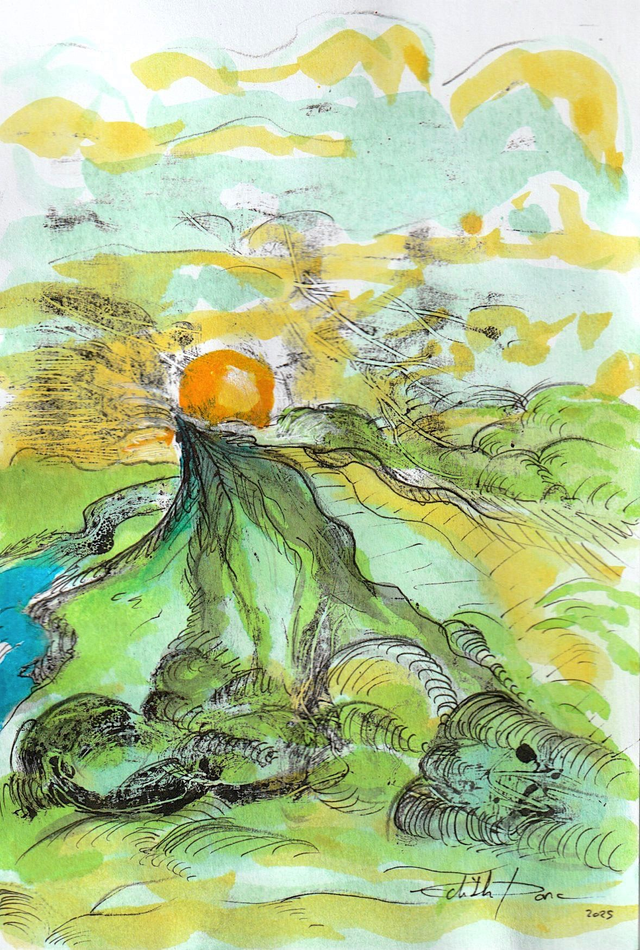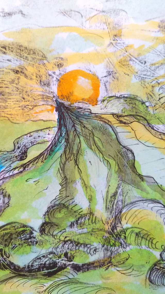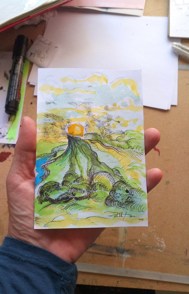 Monotype à l'huile, encre et stylo bille sur papier